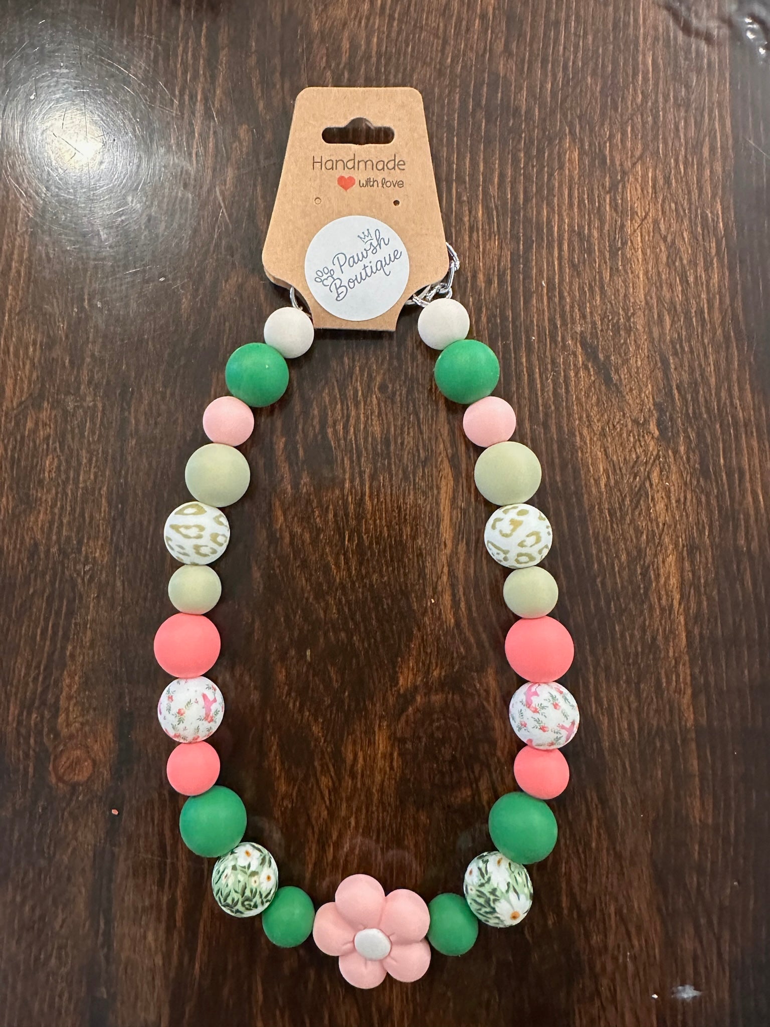 This handmade collar is perfect for pets who love a floral flair! With soft pinks, lush greens, and delicate patterns, it’s like a garden stroll in collar form.