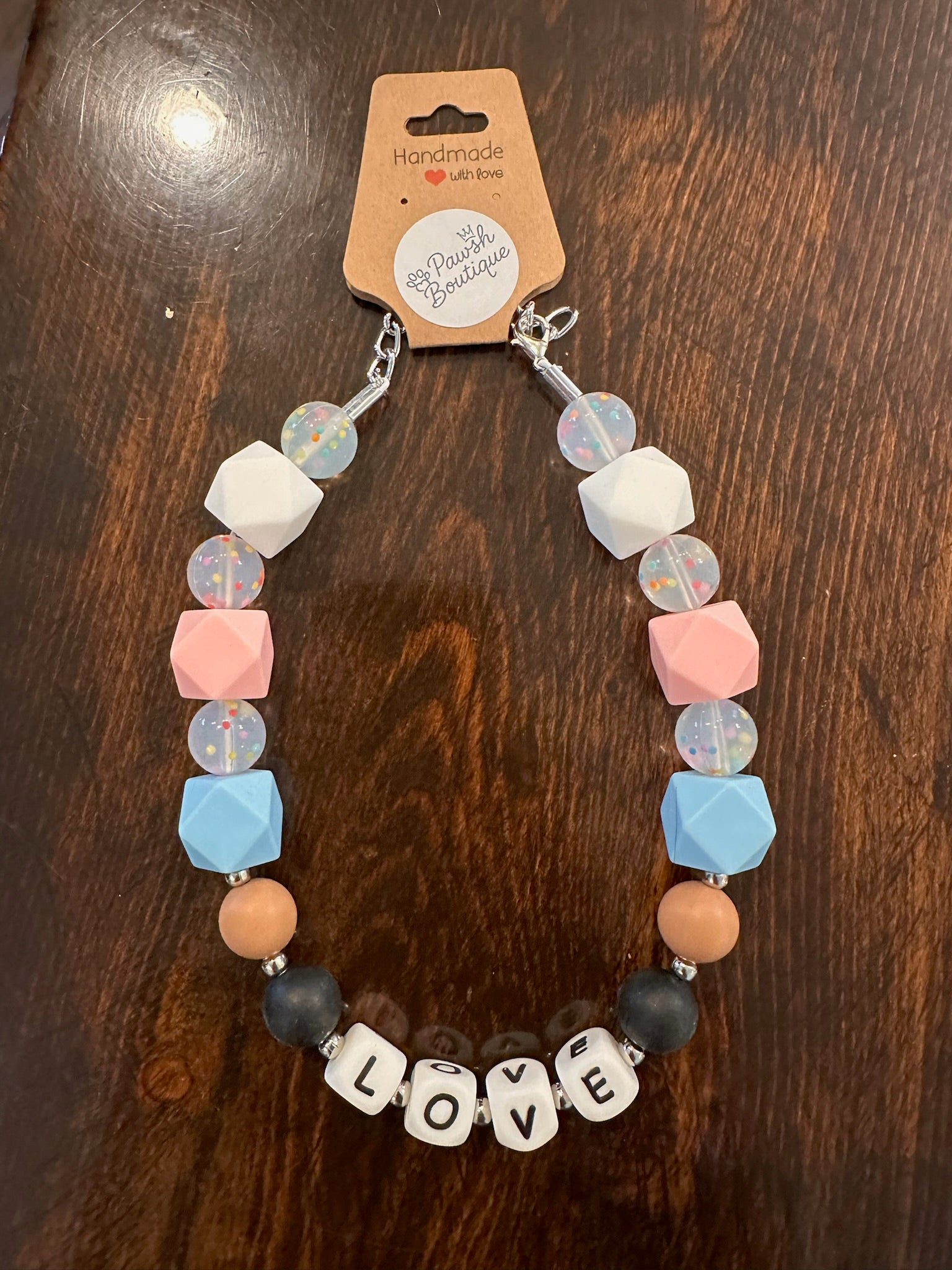 This handmade collar is full of charm, color, and the sweetest message of all — LOVE. With pastel blocks, sparkly beads, and a modern vibe, this one’s perfect for your stylish sweetheart. 🐾