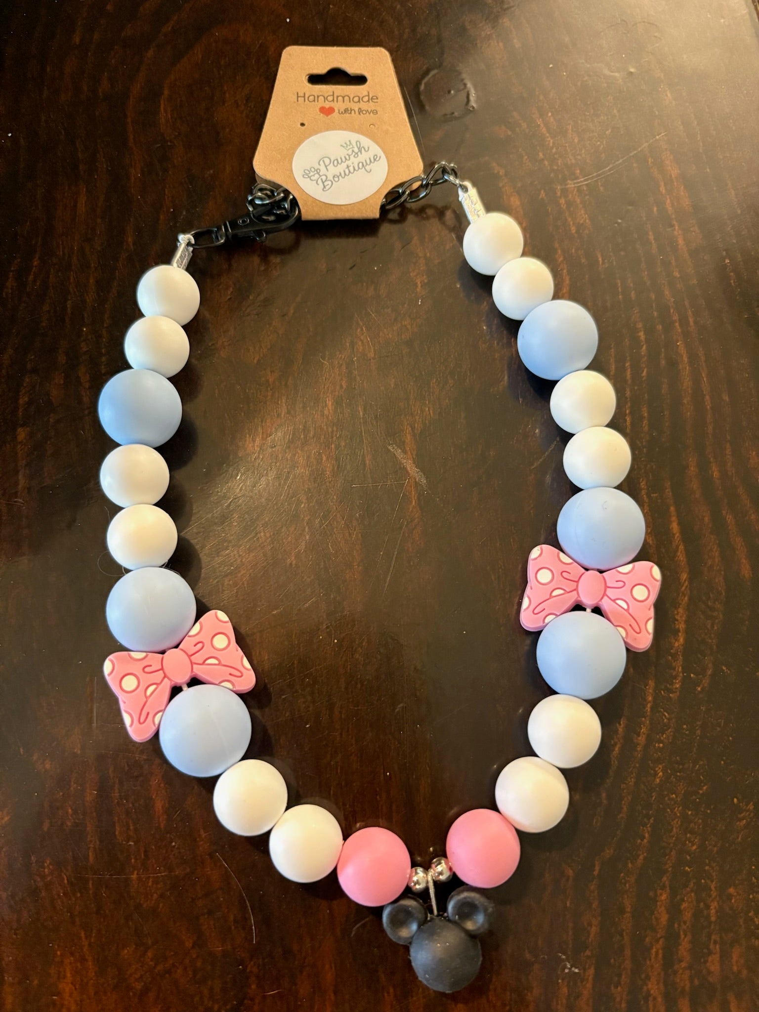 This collar brings all the nostalgia and charm with soft pastels, pink bows, and the cutest little mouse detail. Perfect for your magical sidekick! 💫🐾